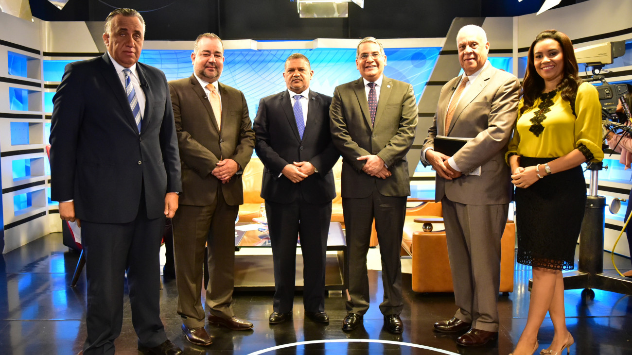 Luisín Mejia, Oscar Medina, Martín Zapata, Alberto Perdomo, Freddy Sandoval y Yohanna Valenzuel, con ocasión de participar en el programa Hoy Mismo, que transmite Color Visión, Canal 9.