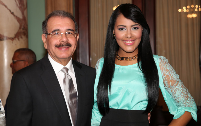 El presidente Danilo Medina y una de las estudiantes que participarán en la XIII Versión de México 2013, con el patrocinio del Grupo Telemicro.