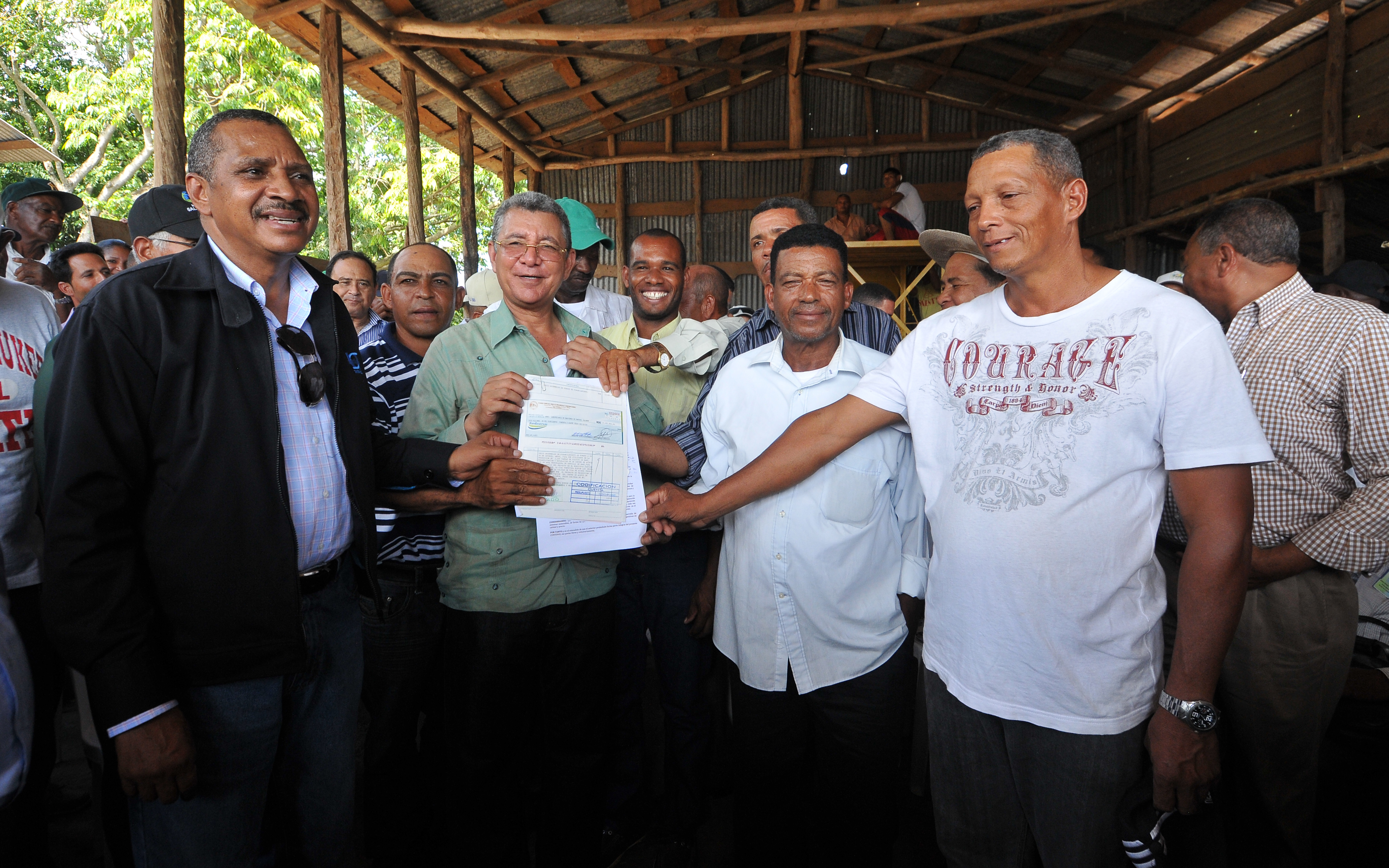Durante la entrega de los cheques, el director del FEDA estuvo acompañado por Justo Guzmán, coordinador de Proyectos de la Presidencia y los directores del Instituto Nacional de Recursos Hidráulicos (INDRHI), Olgo Fernández; del Instituto Agrario Dominicano (IAD), Radhamés Valenzuela.