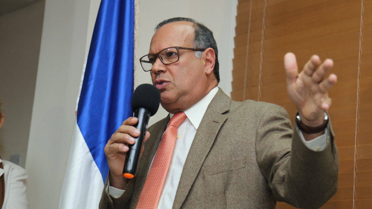 Director ejecutivo del Servicio Nacional de Salud, Dr. Nelson Rodríguez Monegro, en rueda de prensa donde aseguró que el Gobierno cumplió a cabalidad todos los acuerdos alcanzados en el sector salud.