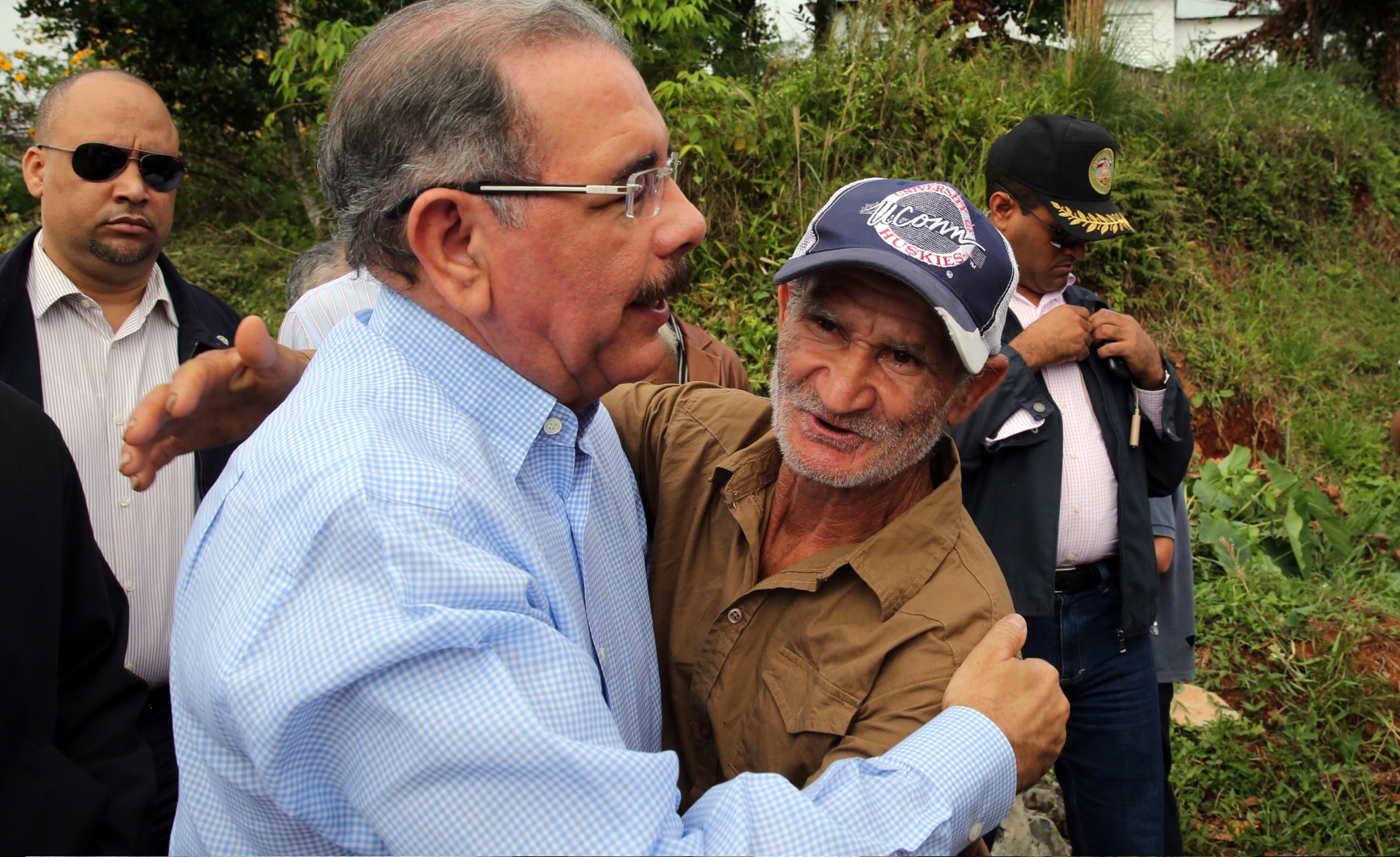 Presidente Danilo Medina con moradores de la comunidad de Blanco, Bonao, presentes durante su encuentro con productores agrícolas de la zona.
