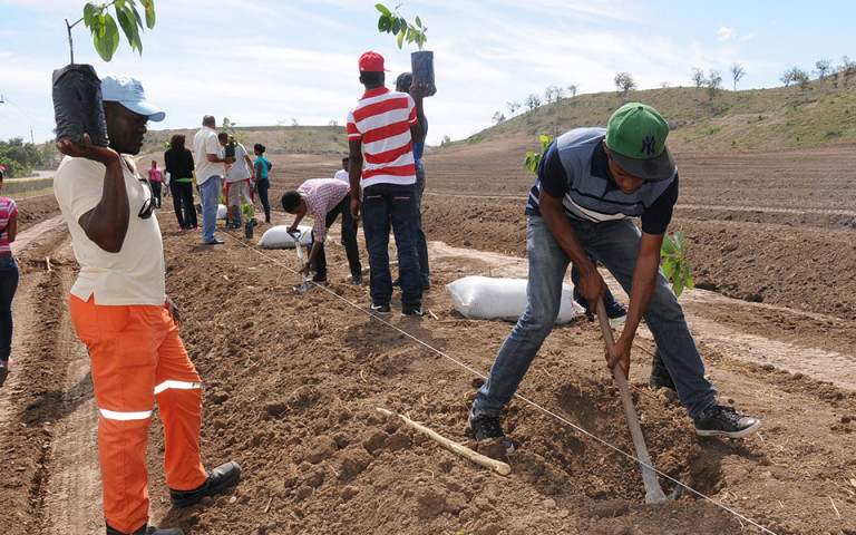 Estudiantes becados de la carrera de Agronomía de un total de 92, que se van a beneficiar.en sus estudios con este proyecto y crearán una cooperativa. Serán emprendedores. Esperan ganar mucho dinero. "Ser grandes", dice Margarito Ogando, presidente de los estudiantes de Agronomía CURO-UASD.