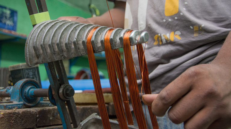 Cristian Cabrera, rebobinador en Taller Tamereci, en Santiago, ha enseñado a varios jóvenes como rebobinar motores. Cristian es uno entre más de medio millón de dominicanos y dominicanas que consiguió empleo durante el gobierno de Danilo Medina.