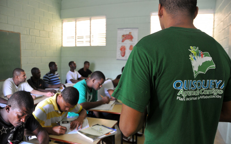 Internos penitenciarios de Najayo-Hombres, San Cristóbal, visto durante labores de aprendizaje del programa Quisqueya Aprende Contigo.