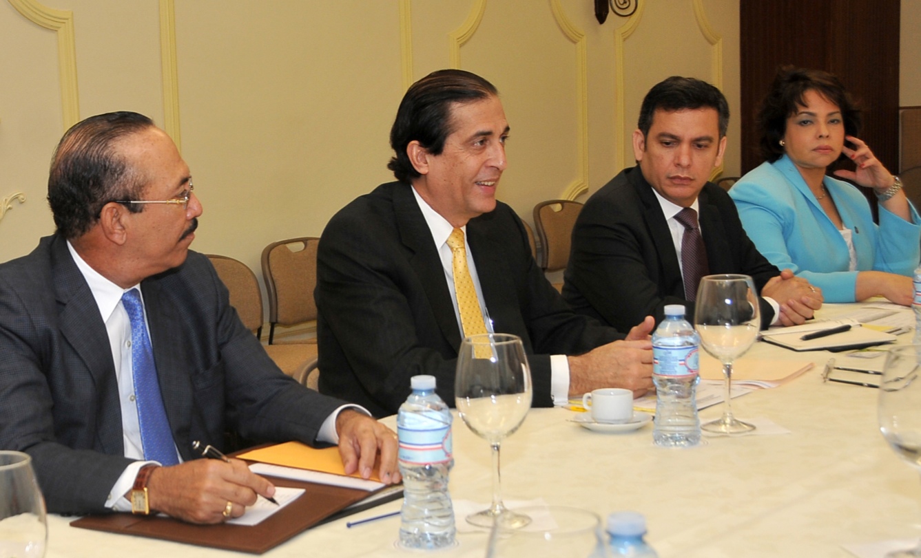 De izquierda a derecha, Luis Ramón Rodríguez, ministro de Agricultura; Gustavo Montalvo, ministro de la Presidencia; Luis Henry Molina, vicemistro de la Presidencia y Yokasta Guzmán, directora general de Compras y Contrataciones del Estado, presentes durante la presentación de la comisión.