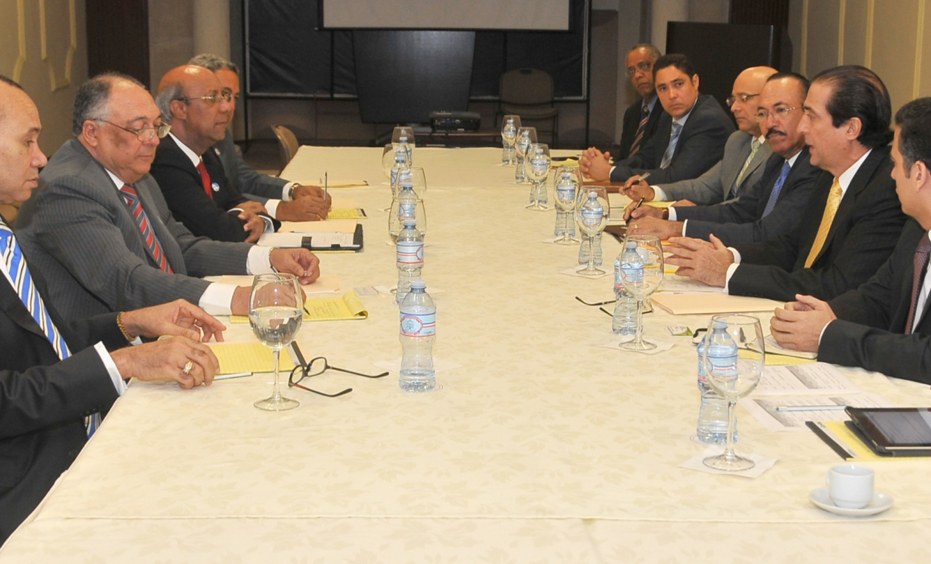 Reunión encabezada por el ministro de la Presidencia, Gustavo Montalvo con los integrantes de la Comisión de Veeduría del Ministerio Agricultura, señores Pedro Taveras, en representación de la Iglesia Católica; Benito Ferreiras, rector de la Universidad ISA de Santiago de los Caballeros; Víctor Castro, presidente de la Asociación de Industriales de Herrera; Carlos Florencia, productor arrocero; Patricia Bobea, directora de la Asociación de Jóvenes Empresarios (ANJE) y el pastor George Reinoso, presentes en el encuentro efectuado hoy en el Palacio Nacional.