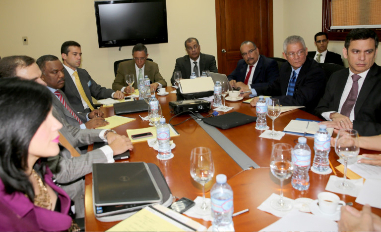 Participantes en el encuentro encabezado por Gustavo Montalvo, ministro de la Presidencia y Maritza Hernández, ministra de Trabajo. Como establece el Decreto 286-13, la Comisión está integrada por los economistas Manuel Alejandro Jiménez, Jeffrey Lizardo y José Vicente, así como por los abogados José Darío Suárez, Joaquín Luciano y Marisol Vincens.