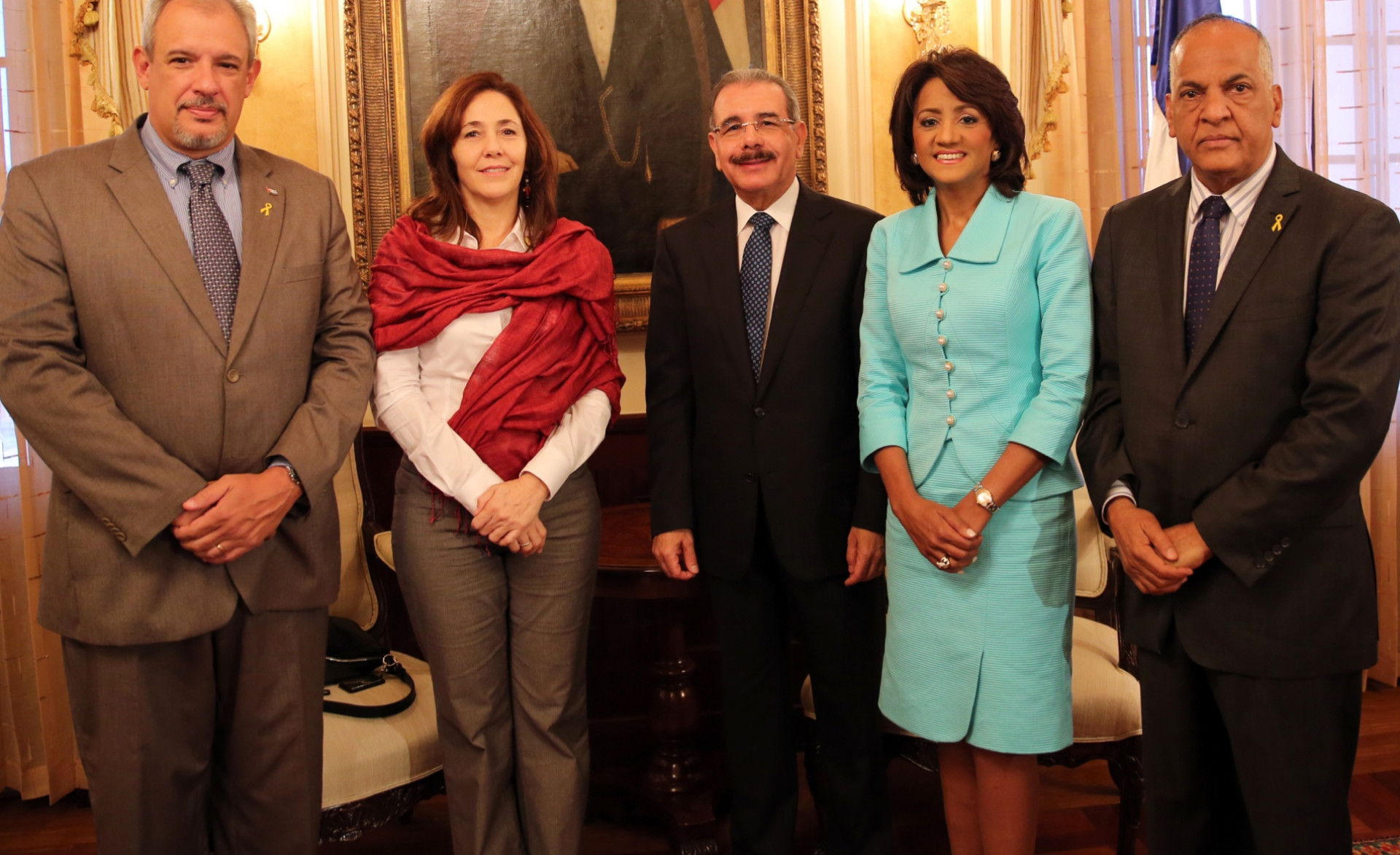 Presidente Danilo Medina y esposa Cándida Montilla de Medina, durante encuentro con Mariela Castro, Alexis Bandrich Vega, embajador de Cuba en República Dominicana y Víctor Terrero, director del Consejo Nacional para el VIH/SIDA en el país.