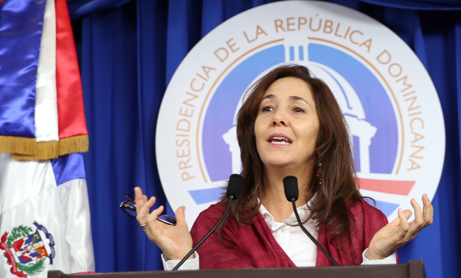 Mariela Castro, directora de CENESEX, durante conferencia de prensa en el Salón Orlando Martínez del Palacio Nacional.