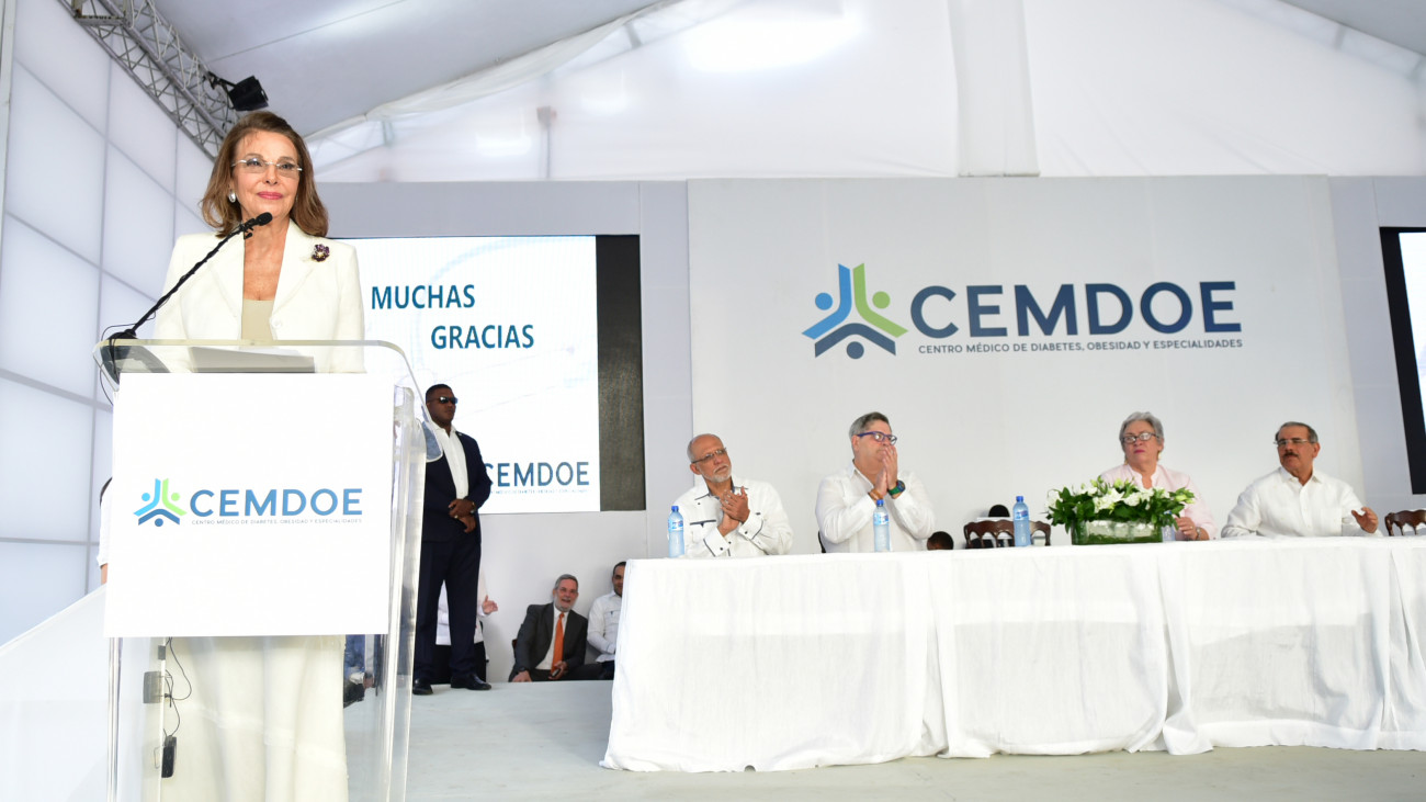 Mariela Vicini, fundadora de CEMDOE, agradeció al presidente Danilo Medina por apoyarlos y y estar presente en el acto. Además, aprovechó la ocasión para ofrecer a los asegurados del SENASA los servicios de del centro médico.