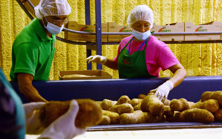 Empleados de HortiPack en labores de empaque para el furgón de ñame blanco que saldrá desde Samaná hacia Nueva York. El primer contenedor para este mercado fue comprado por la empresa Capital Trade a la que se enviará un contenedor semanal.