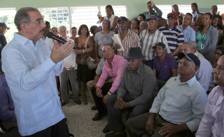 Visita del presidente Danilo Medina al distrito municipal Barraquito, en Villa Riva, provincia Duarte donde se reunió con productores agrupados en la Federación Agraria La Faly, a quienes les recordó que no administra recursos propios, sino del Estado, por lo que deben honrar sus compromisos. "Yo no estoy manejando fondos míos, son de la sociedad dominicana".