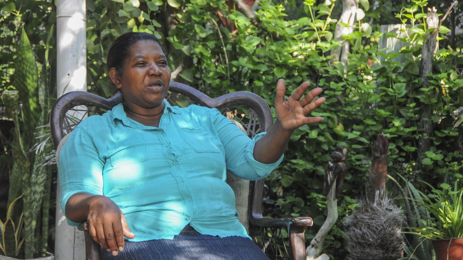 Iris Díaz, reside en Las Calderas, de Baní, donde se volvió una líder y además alfabetiza a campesinos y vecinos de su barrio. Ella afirma que "Ser de barrio es algo ejemplar". #SomosDeBarrio
