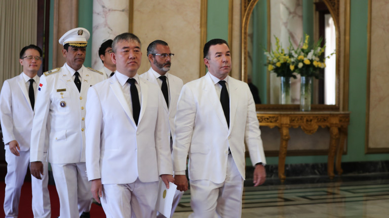 Byung-Yun Kim, embajador extraordinario y plenipotenciario de la República de Corea, al ser conducido para la presentación de sus cartas credenciales ante el presidente Danilo Medina.