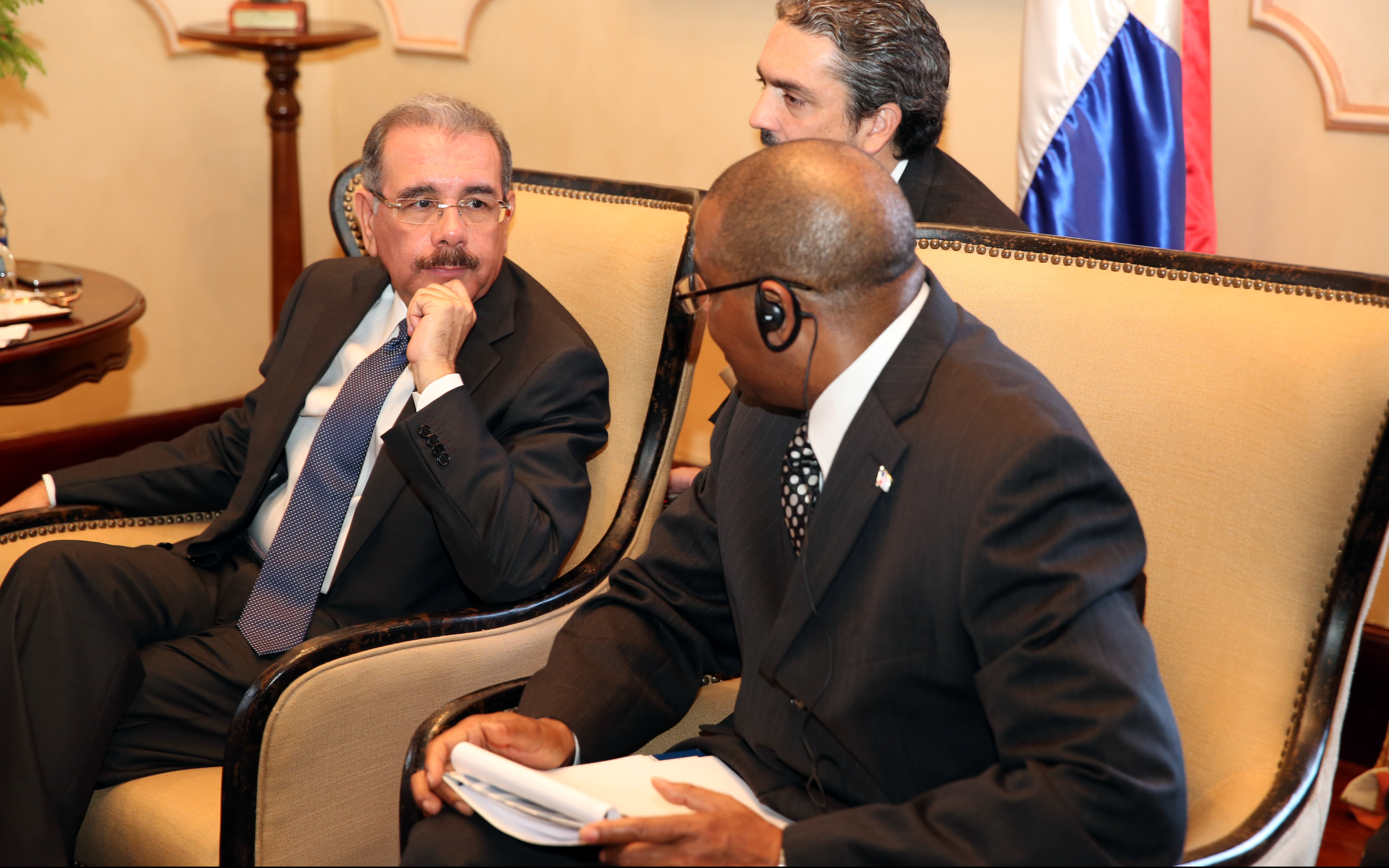 Presidente Danilo Medina mientras conversa con Denny H. Kalyalya, de Zambia, durante su visita al despacho del Mandatario del Palacio Nacional.