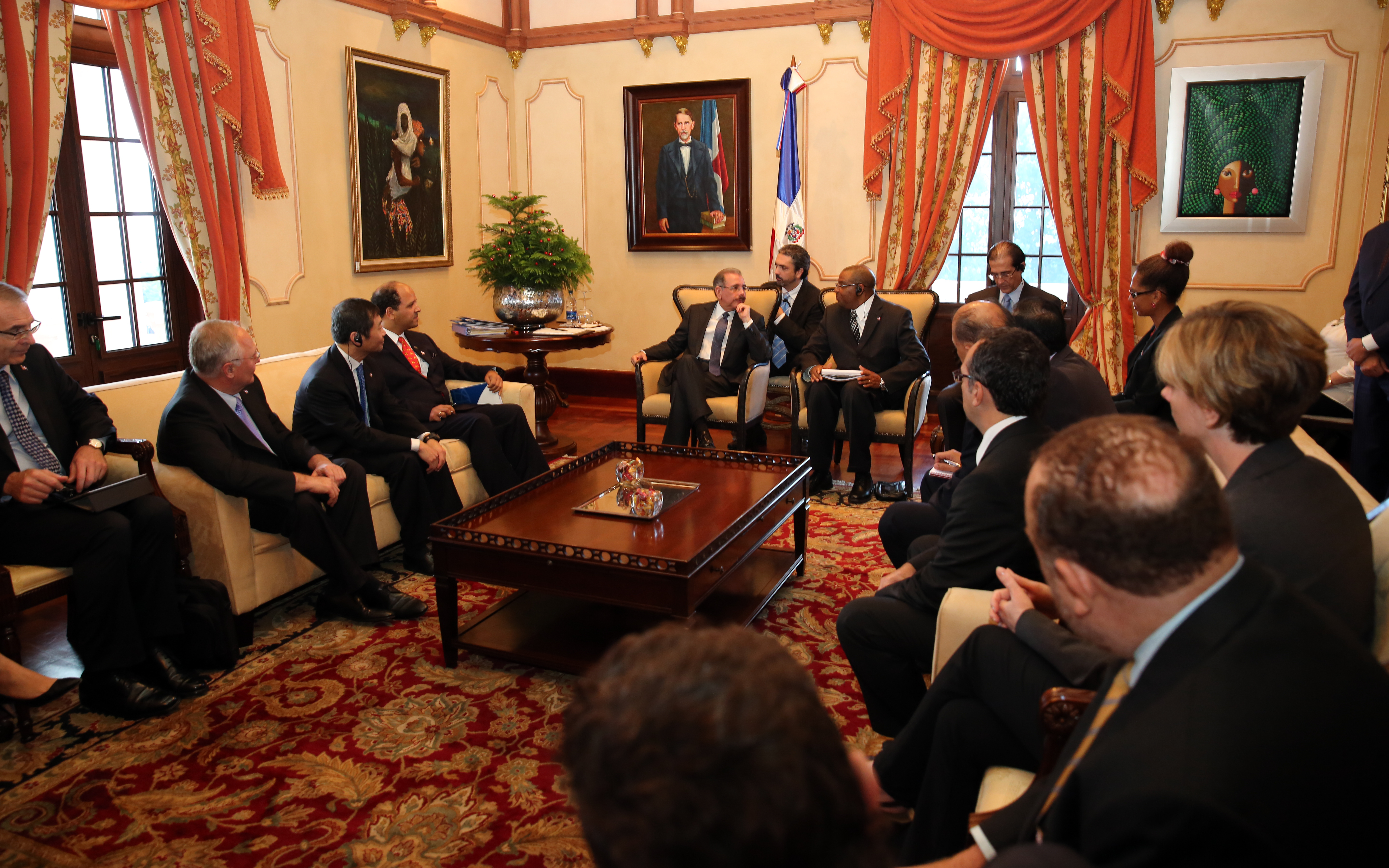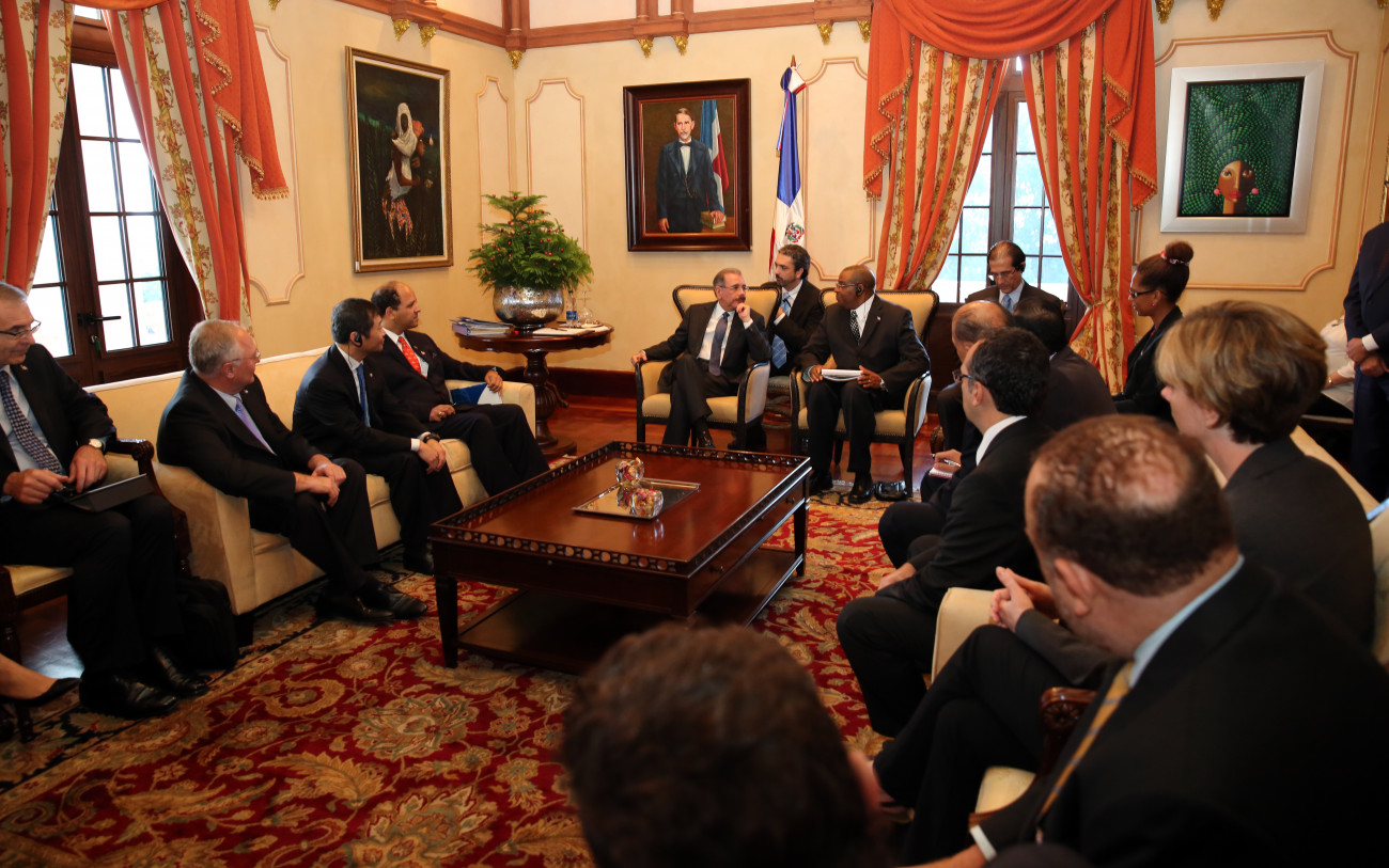 Vista del encuentro encabezado por el presidente Danilo Medina con representantes del Banco Mundial, quienes buscan tener una impresión de primera mano de los retos, desafíos y oportunidades que enfrentan los países miembros del Banco Mundial.