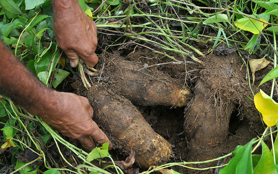 Muestra del cultivo de ñame producido por agricultores de Monte Plata, beneficiados con el credito oficial para la siembra y proceso de comercialización.