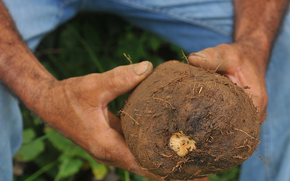 Muestra del cultivo de ñame producido por agricultores de Monte Plata, beneficiados con el credito oficial para la siembra y proceso de comercialización.