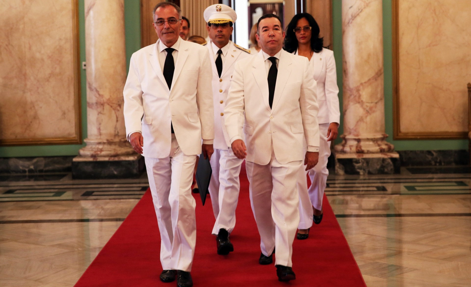 Embajador Alberto Navarro, jefe de la Delegación de la Unión Europea en el país, al momento de ser conducido al Salón de Embajadores del Palacio Nacional, durante acto de presentación de Cartas Credenciales ante el presidente de la República, Danilo Medina Sánchez.