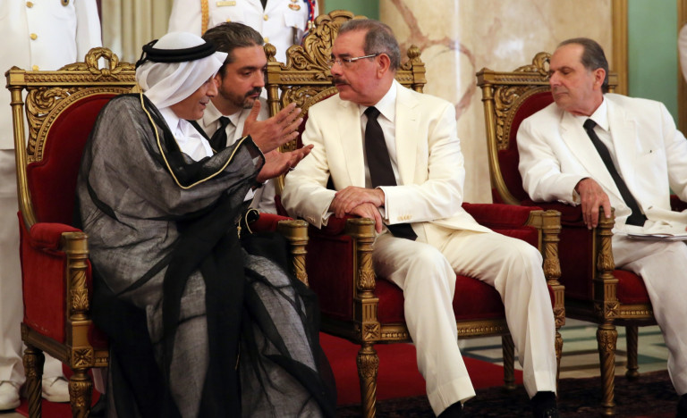 Participación del presidente de la República, Danilo Medina y Khamis Al Sahouti, nuevo embajador del Estado de Qatar en el país, durante presentación de Cartas Credenciales, en el Salón de Embajadores del Palacio Nacional.