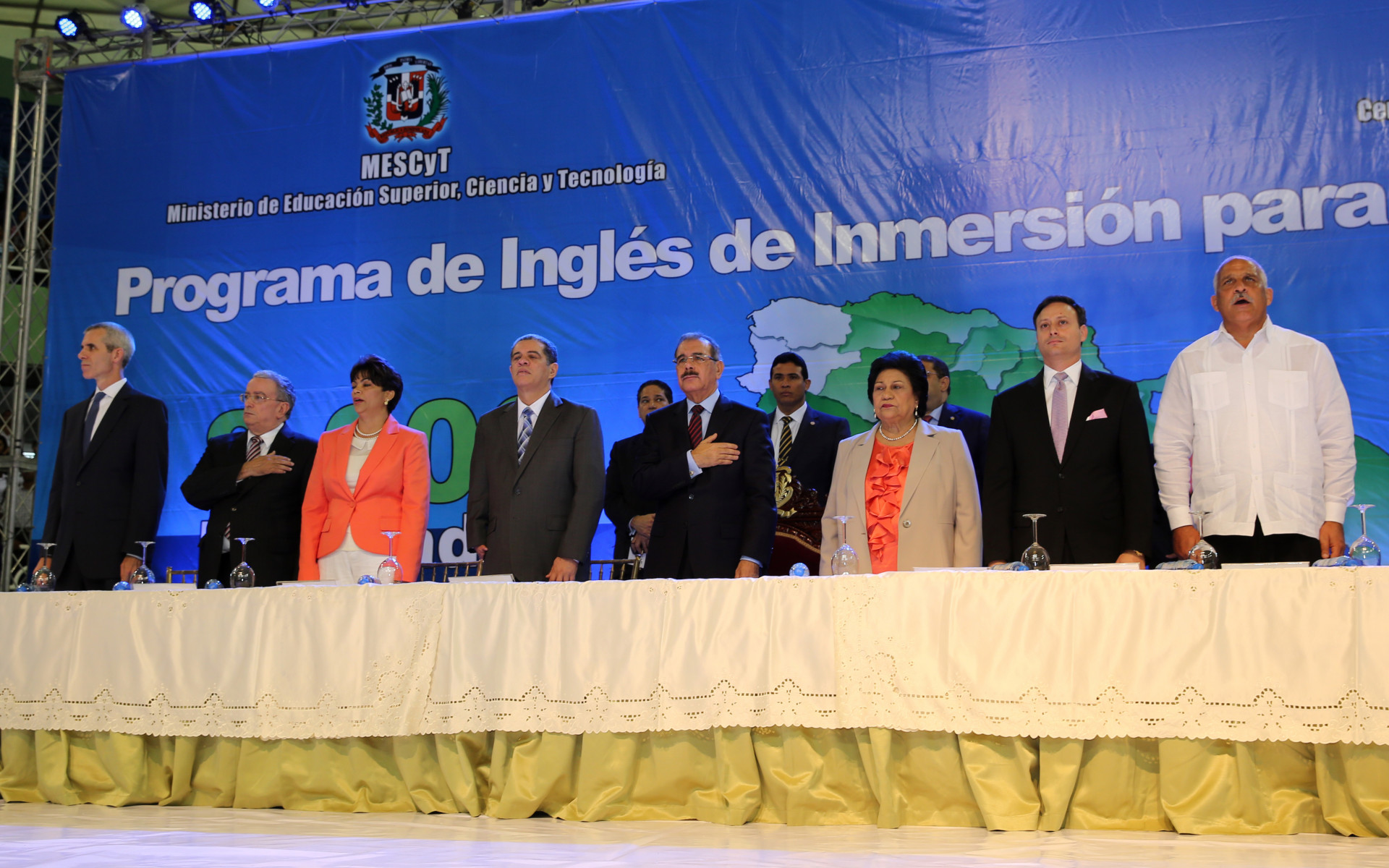Figuran entre los presentes, además del Mandatrio, los ministros, Ligia Amada Melo de Cardona; Carlos Amarante Baret; Jaime David Fernández Mirabal; el director del Centro de Exportación e Inversión (CEI-RD), Jean Alain Rodríguez; la directora del proyecto, Milta Lora;y Radhamés Mejía, rector de la Universidad APEC, entre otros invitados especiales.