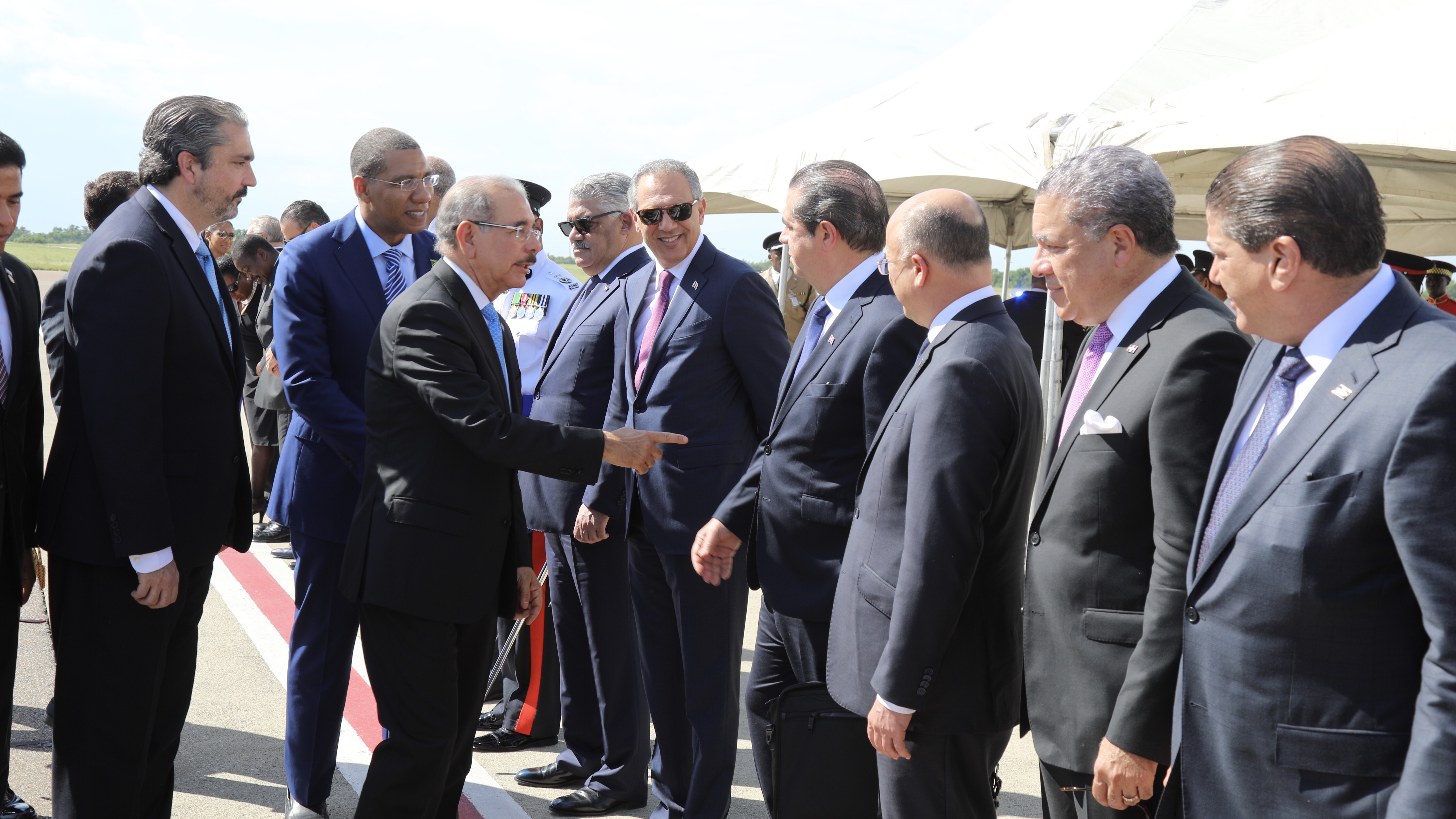 El presidente Danilo Medina llegó a suelo jamaiquino a las 11:08 de la manaña, hora dominicana. La presencia del gobernante dominicano en esta isla se enmarca en una visita de Estado.