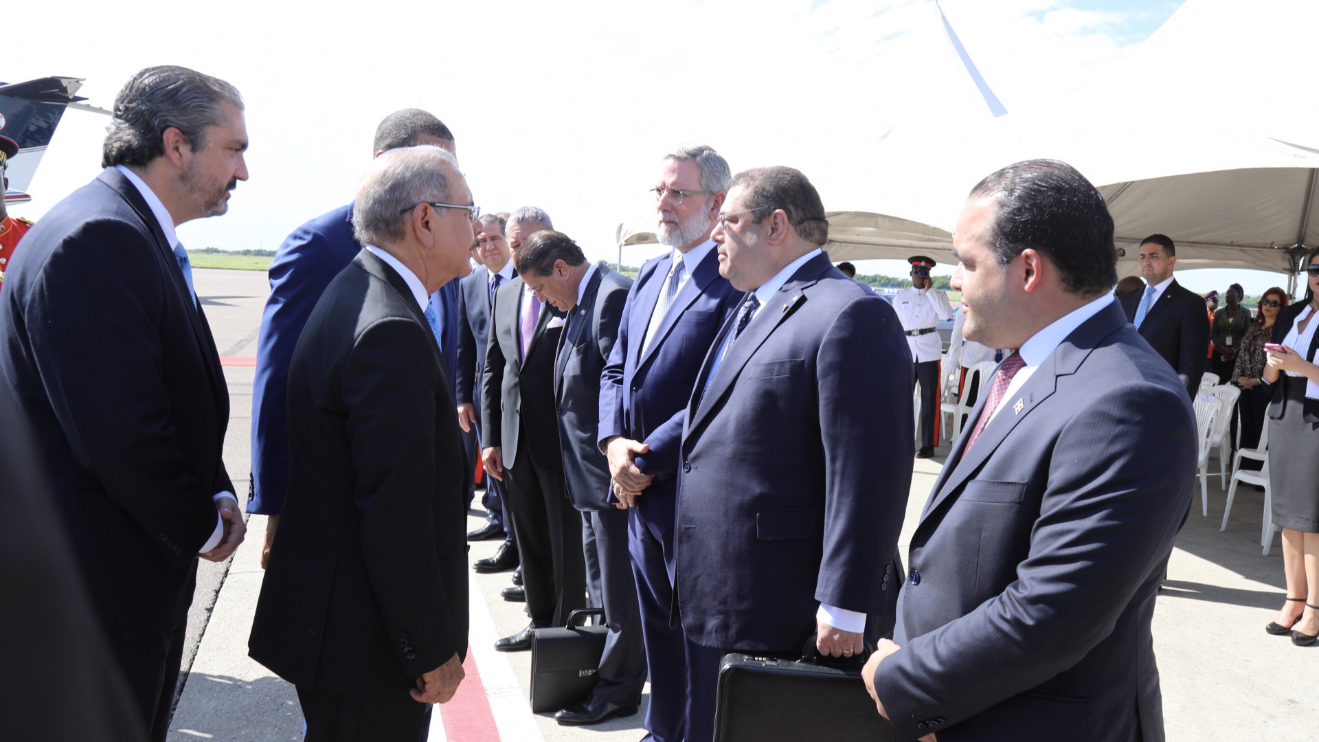 El presidente Danilo Medina llegó a suelo jamaiquino a las 11:08 de la manaña, hora dominicana. La presencia del gobernante dominicano en esta isla se enmarca en una visita de Estado.