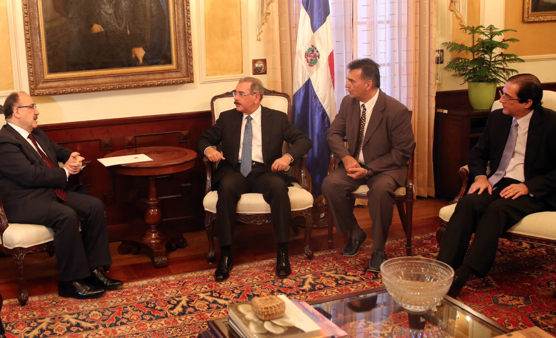 Presidente de la República, Danilo Medina, junto a Beşir Atalay, vice primer ministro de la República de Turquía y comitiva presente, durante encuentro efectuado hoy en el despacho del Mandatario del Palacio Nacional.