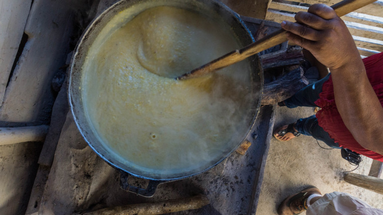 Andrea Beltré, conocida como " La Morena" en el barrio El Manguito de Bohechío, es famosa por el chenchén que prepara.