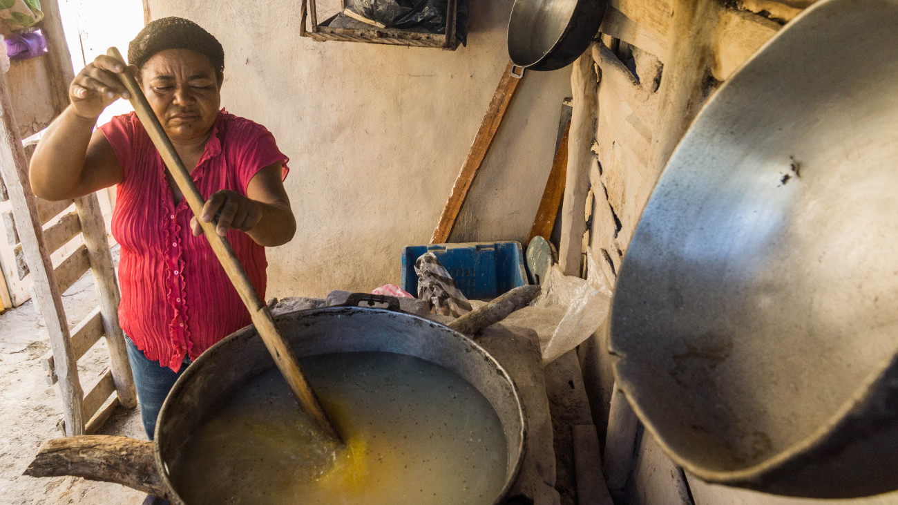 Andrea Beltré, conocida como " La Morena" en el barrio El Manguito de Bohechío, es famosa por el chenchén que prepara.