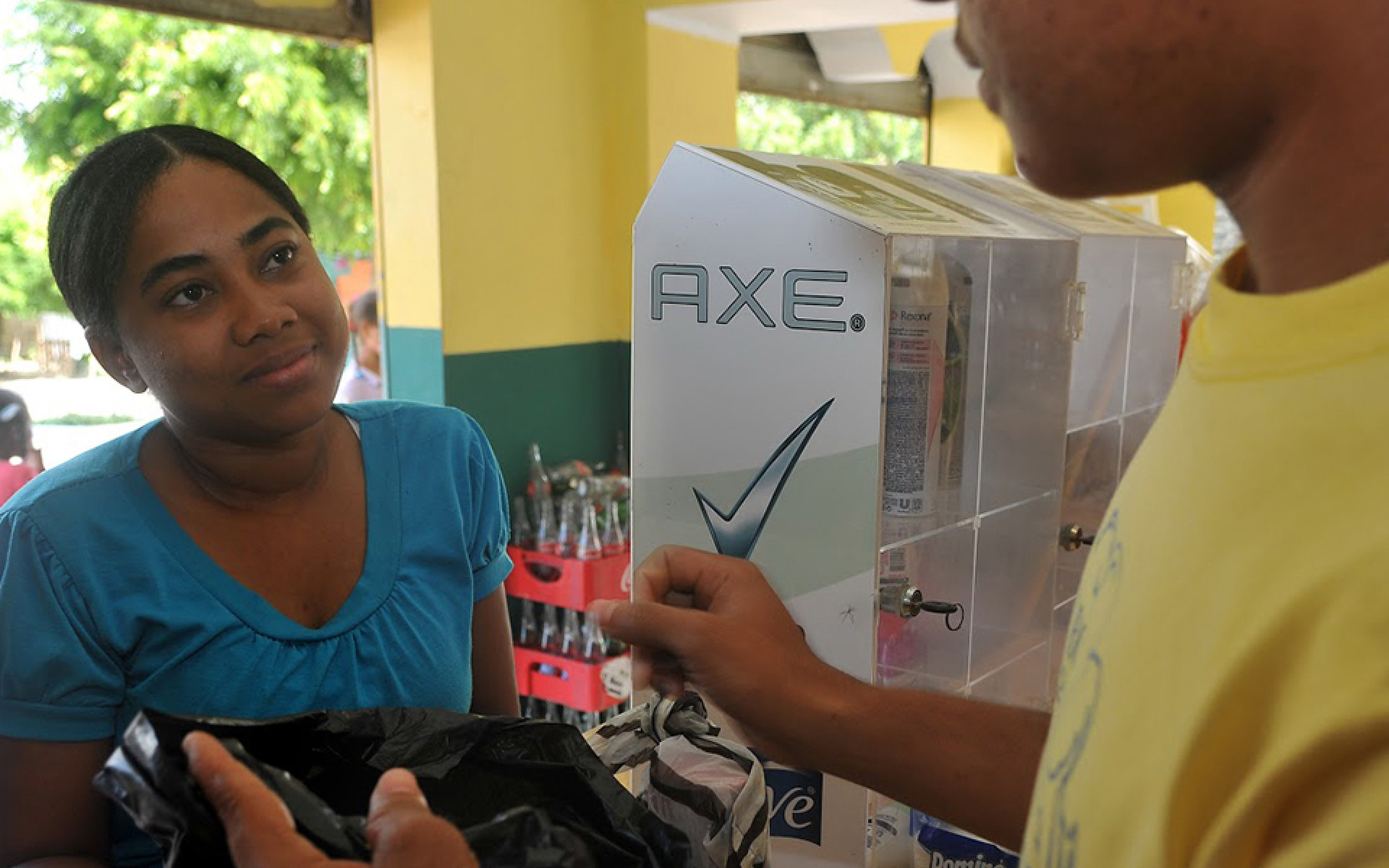 Lo bien surtida que está la Cooperativa tan solo da una idea de la falta que hacía en Fondo Negro, Barahona. En esta imagen vemos a una joven realizando su compra y al dependiente haciendo su labor.