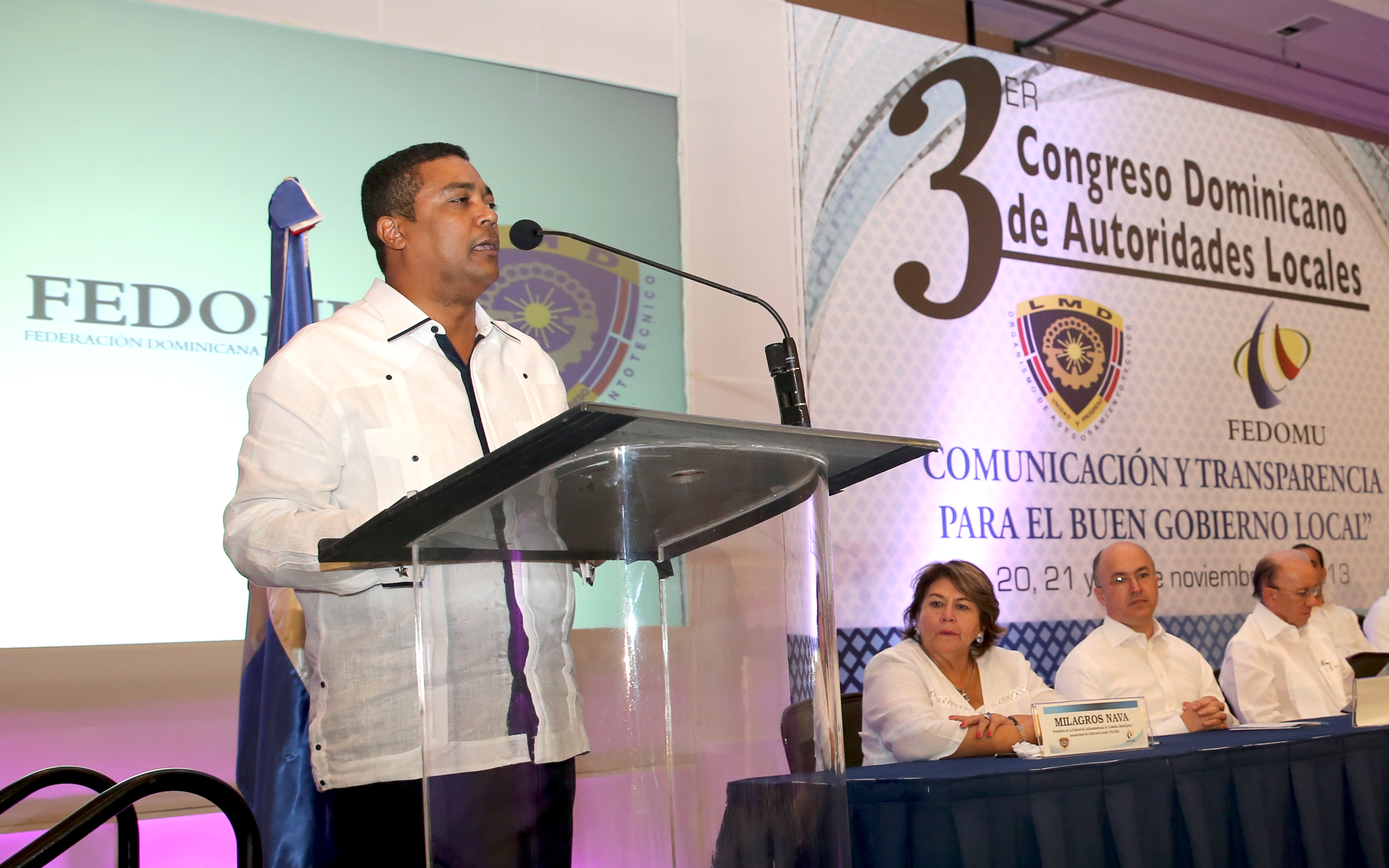 Víctor D'Aza, director Ejecutivo de la Federación Dominicana de Municipios (Fedomu), se dirige a los presentes.