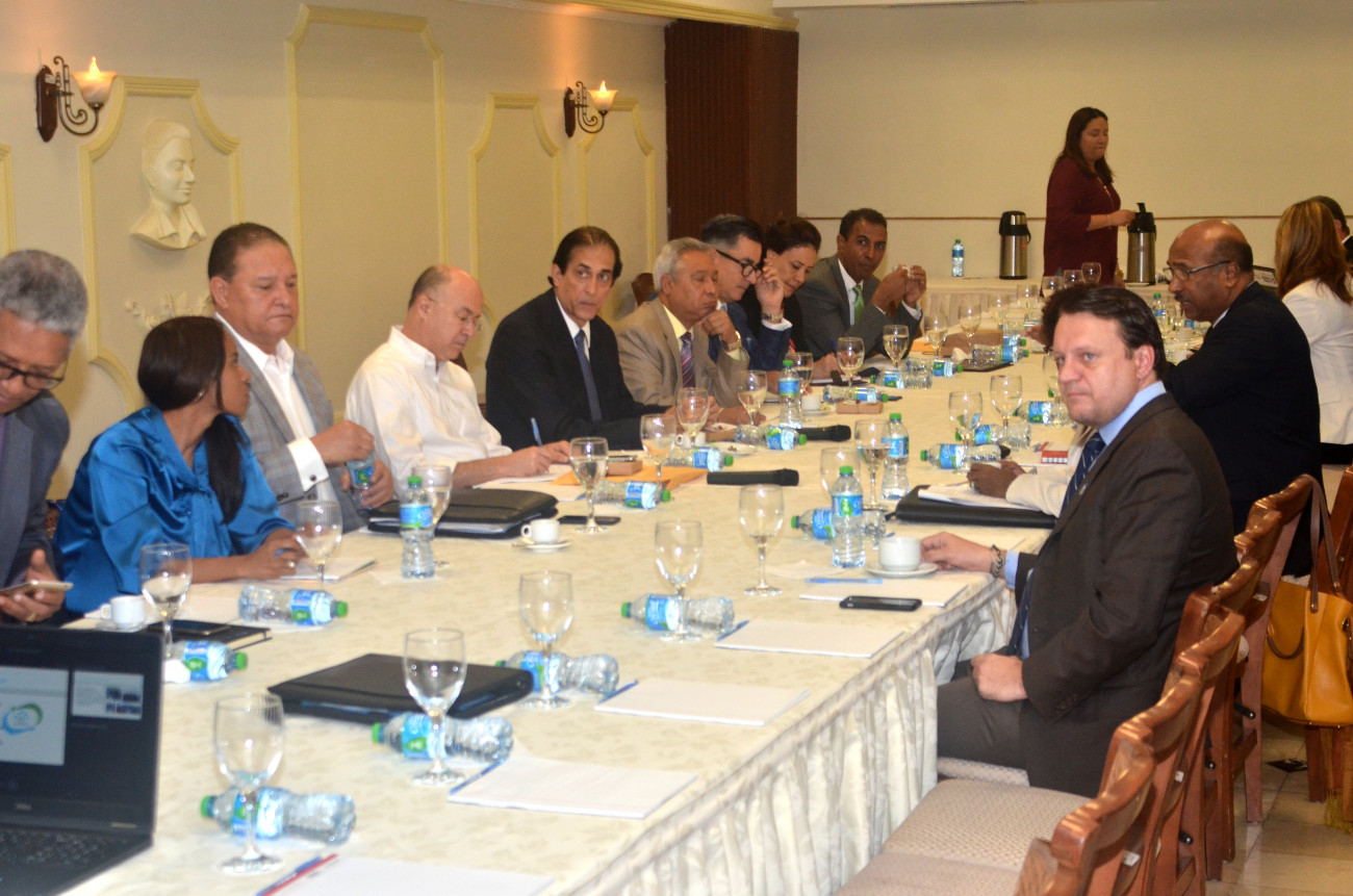 El ministro de la Presidencia, Gustavo Montalvo, en reunión con la Comisión Presidencial para la rehabilitación, saneamiento y uso sostenible de la cuenca de los ríos Ozama e Isabela (COI), para pasar revista a los avances. Salón Hermanas Mirabal del Palacio Nacional.