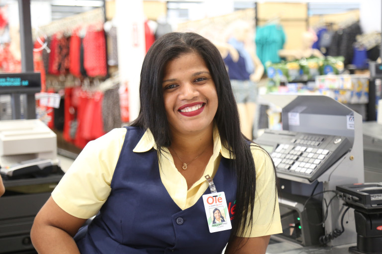 Empleada del nuevo Hipermercado Olé, ubicado en Ciudad Juan Bosch, inaugurado hoy en acto encabezado por el presidente Danilo Medina.
