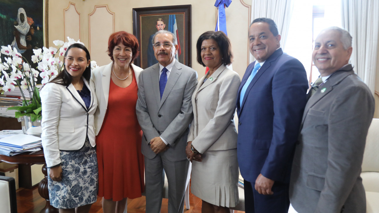 El presidente Danilo Medina recibió hoy un informe de los avances en la rehabilitación de la planta de alimentos para humanos en El Factor de Nagua. El director del IAD, Emilio Toribio Olivo, encabezó la comitiva recibida por el mandatario en el Palacio Nacional.