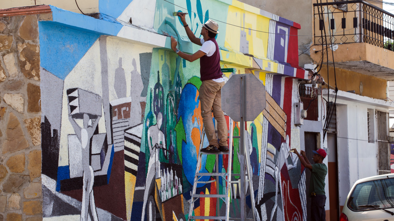 Manuel Omar Hernández es muralista en su barrio Los Pepines, Santiago. Sus murales recogen preocupaciones culturales y de preservación medio ambiental; una forma de comunicar para cambiar actitudes y comportamientos de su gente en el barrio y más allá. #SomosDeBarrio Foto: Presidencia República Dominicana Enlace noticia: presidencia.gob.do/noticias/los-pepines-santiago-manuel-o... Video YouTube: www.youtube.com/watch?v=7RwViM3Mu4E
