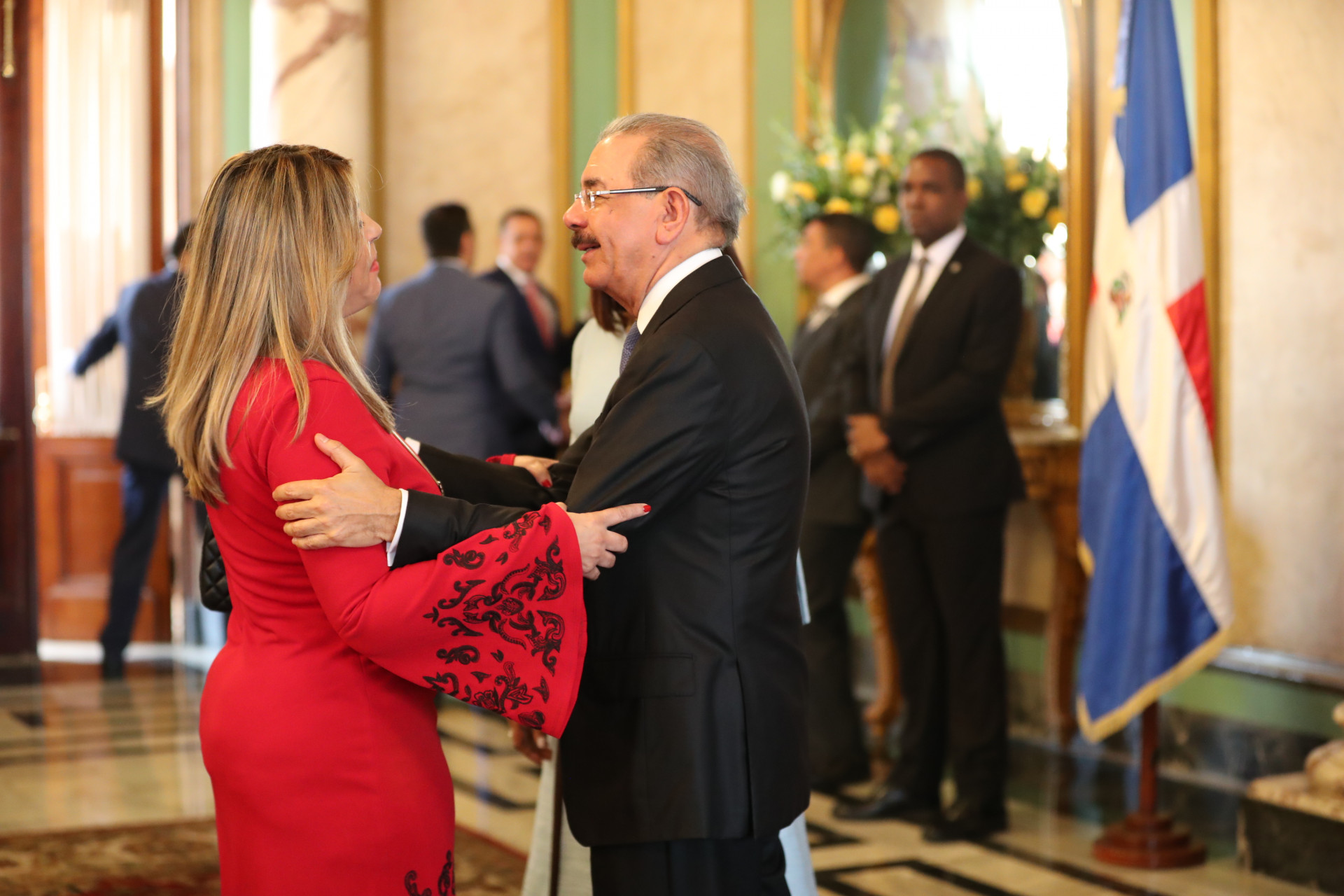 Danilo Medina recibe saludos de Año Nuevo con mucho entusiasmo; lo acompaña Cándida Montilla