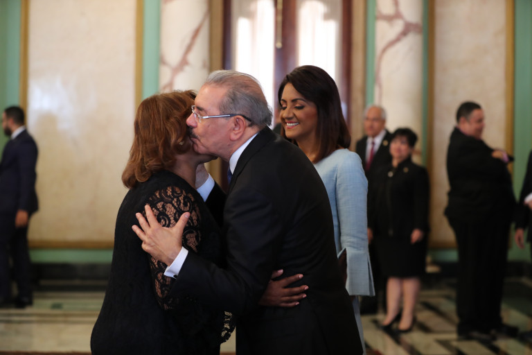 Danilo Medina recibe saludos de Año Nuevo con mucho entusiasmo; lo acompaña Cándida Montilla