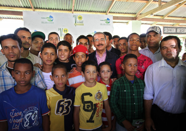 La visita no podía terminar sin que el presidente Medina se fotografiara con los jóvenes estudiantes de COOPBAMBÚ y sus maestros.