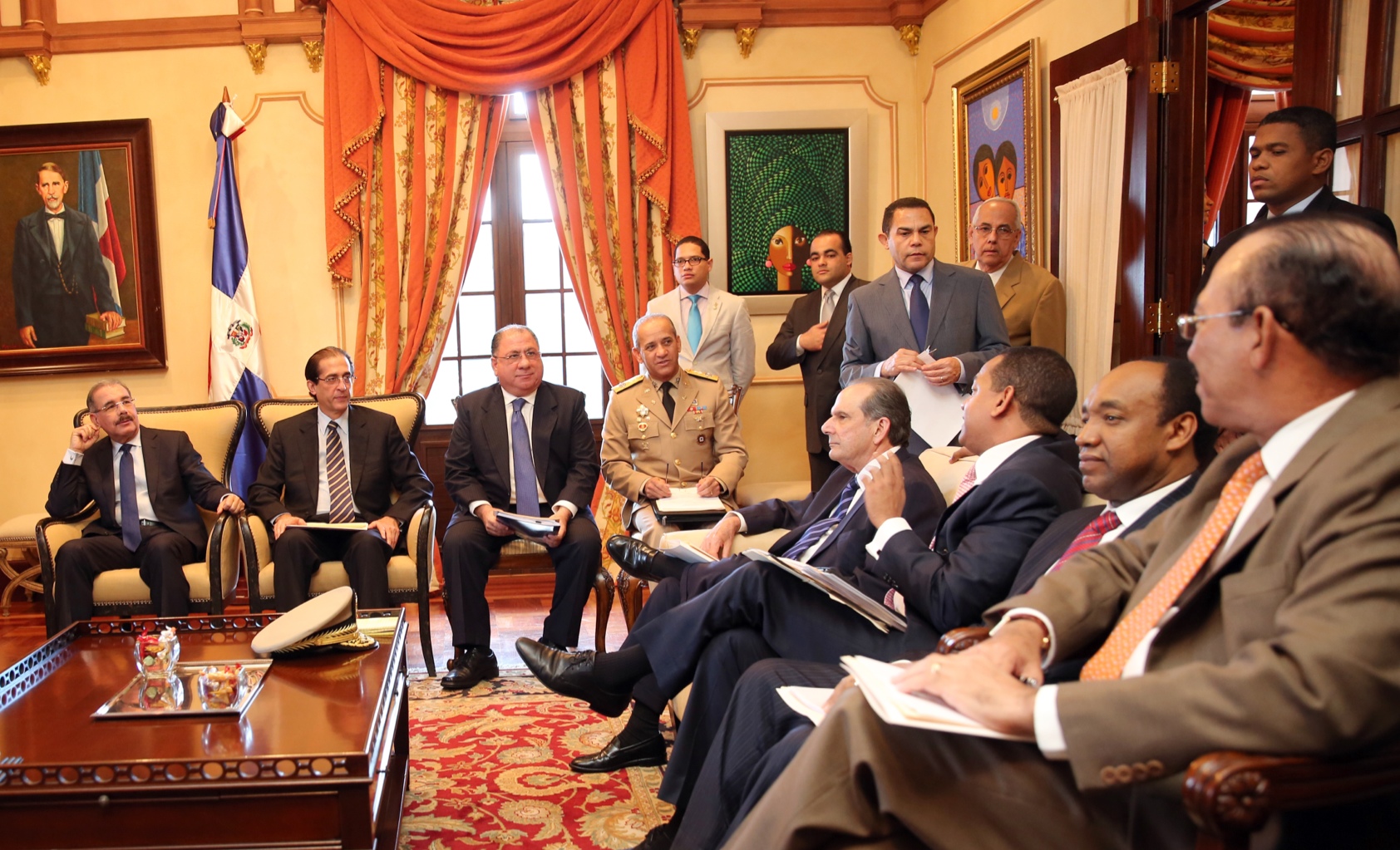 Participación del presidente Danilo Medina con la Comisión Nacional de Migración para conocer las propuestas realizadas por entidades nacionales e internacionales a fin de consensuar el Plan Nacional de Regularización de Extranjeros en el país, según lo establece la Sentencia 168-13 del Tribunal Constitucional de la República Dominicana.