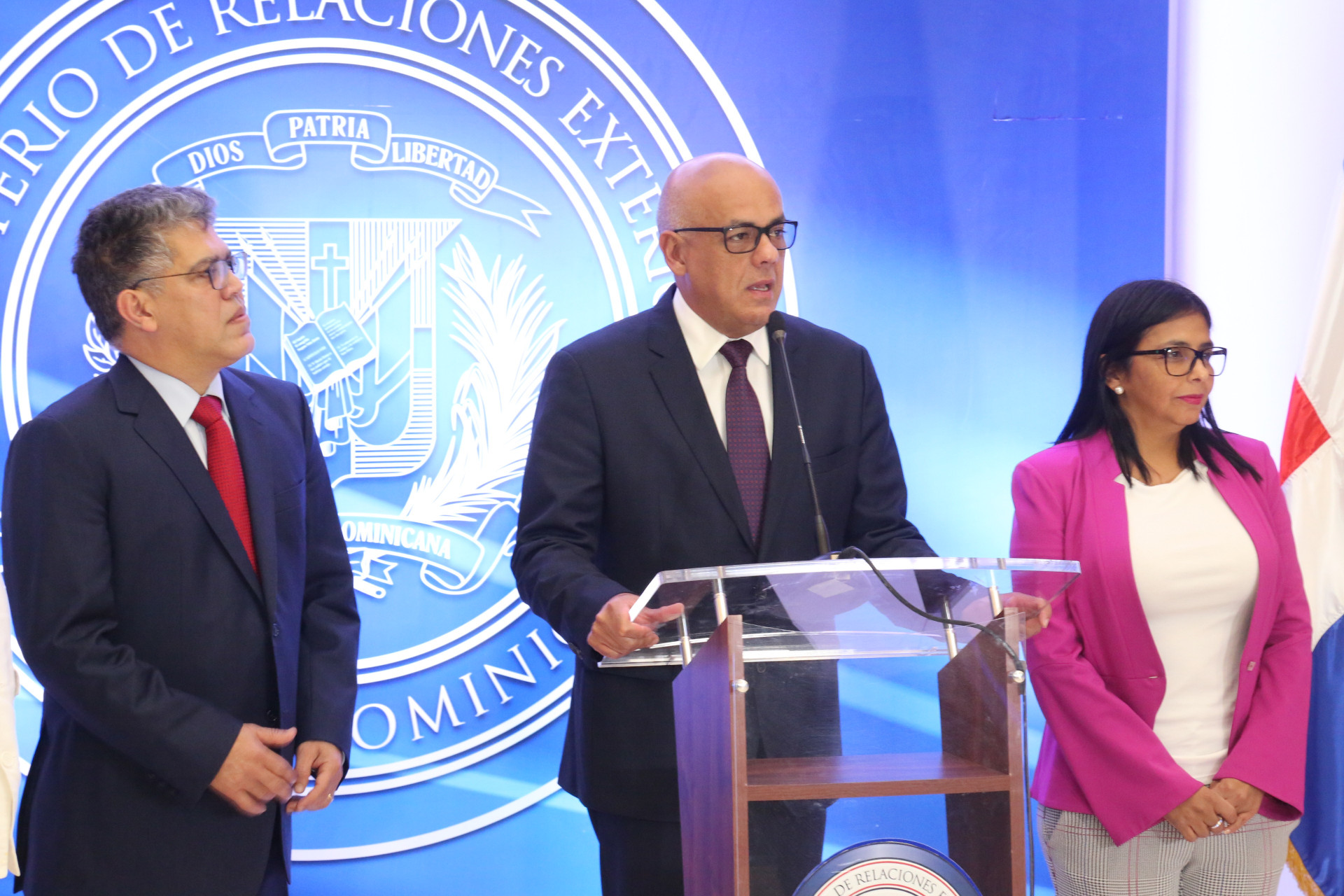 Ministro de Comunicaciones e Información de Venezuela, Jorge Rodríguez, al hablar en el encuentro con la prensa.