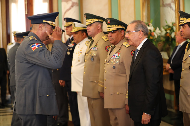 El presidente Danilo Medina recibió, como es ya una tradición, los saludos de los oficiales de las Fuerzas Armadas y la Policía Nacional con 35, 30, 25 y 20 años de labor interrumpida al servicio de la patria. Foto: Luis Ruiz Tito/ Presidencia República Dominicana Enlace notcia: presidencia.gob.do/noticias/presidente-recibe-saludos-de-... Video YouTube: www.youtube.com/watch?v=VPitQF1_LLU
