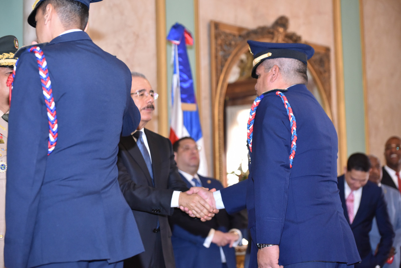 El presidente Danilo Medina recibió, como es ya una tradición, los saludos de los oficiales de las Fuerzas Armadas y la Policía Nacional con 35, 30, 25 y 20 años de labor interrumpida al servicio de la patria. Foto: Karla Sepúlveda/ Presidencia República Dominicana Enlace notcia: presidencia.gob.do/noticias/presidente-recibe-saludos-de-... Video YouTube: www.youtube.com/watch?v=VPitQF1_LLU