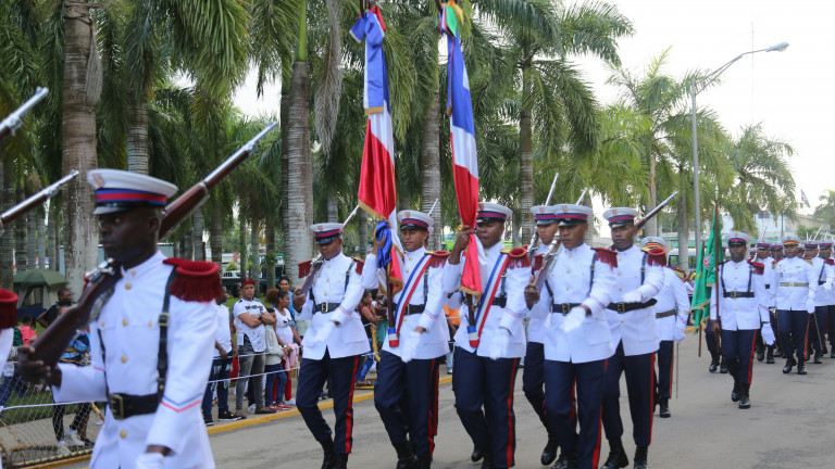 Integrantes del Batallón de Honor de la Guardia Presidencial rindieron los honores correspondientes y una salva de 21 cañonazos a la llegada del presidente Danilo Medina.