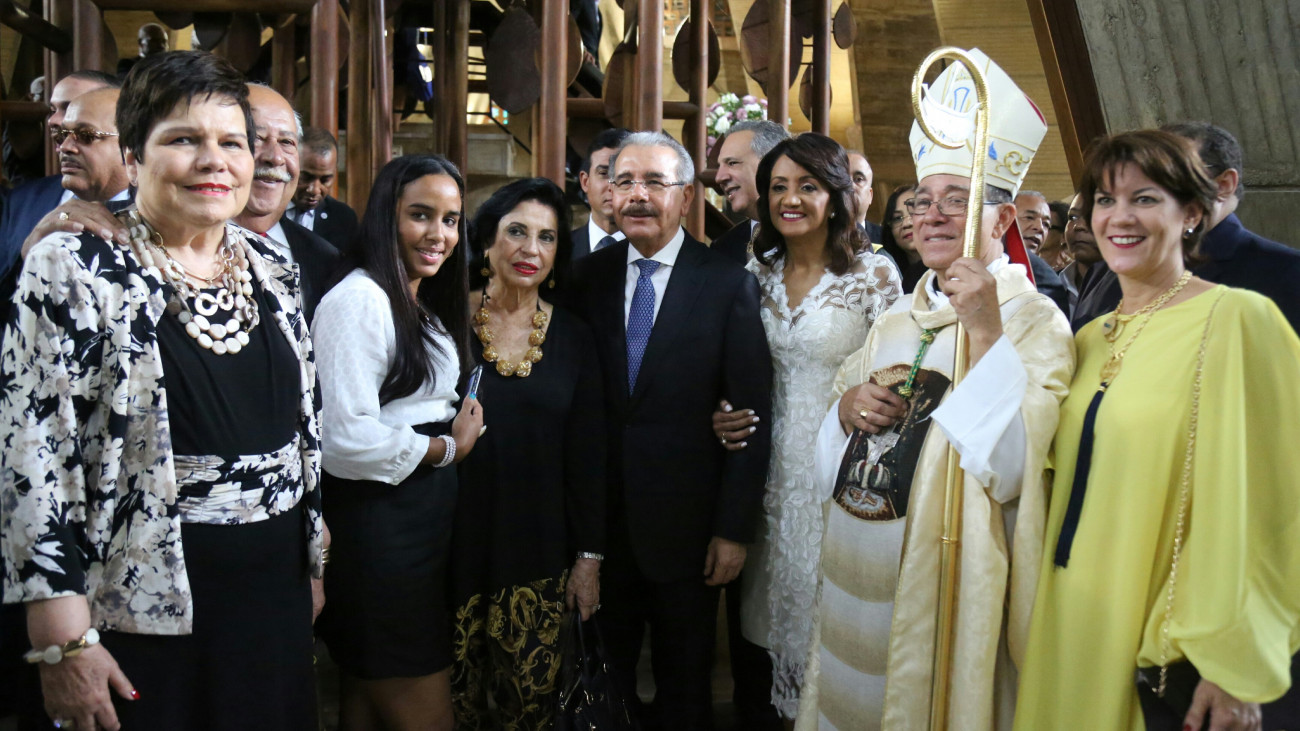Presidente Danilo Medina con su esposa Cándida Montilla de Medina, Mons. Gregorio Nicanor Peña Rodríguez, y personalidades presentes.