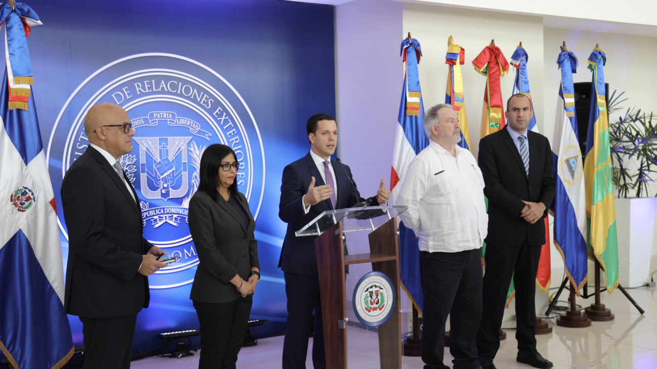Participantes en la quinta ronda del Diálogo para la Paz y Convivencia Democrática en Venezuela efectuada en la sede del Ministerio de Relaciones Exteriores de República Dominicana.