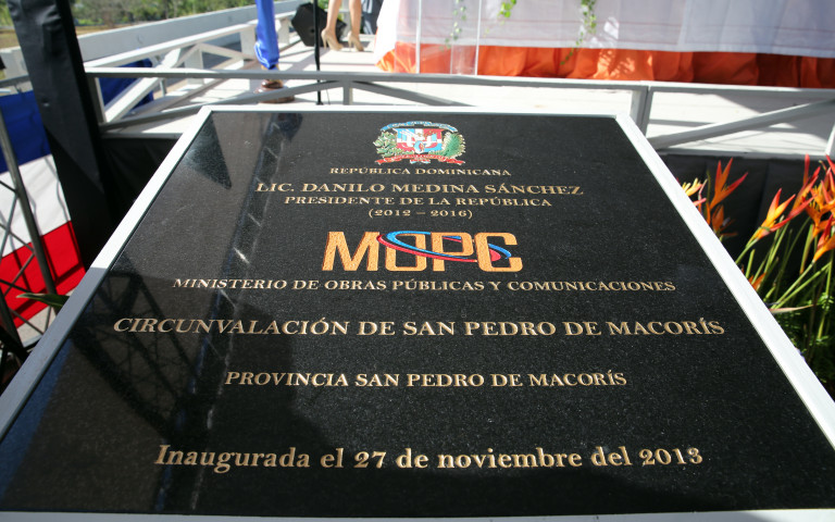 Tarja colocada en lugar con la cual se deja formalmente inaugurada la Circunvalación de San Pedro de Macorís.