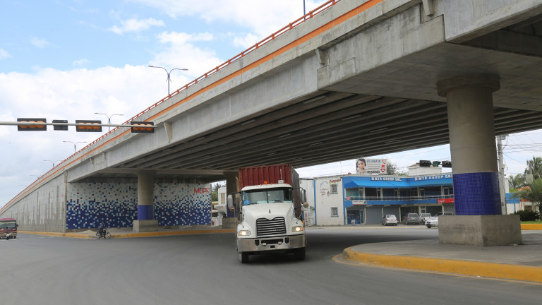 Vista del nuevo elevado del distrito municipal La Caleta, ubicado en la autopista Las Américas de este municipio, inaugurado hoy por el presidente Danilo Medina.
