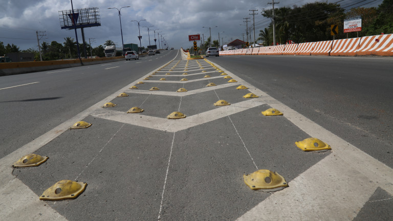 Vista del nuevo elevado del distrito municipal La Caleta, ubicado en la autopista Las Américas de este municipio, inaugurado hoy por el presidente Danilo Medina.