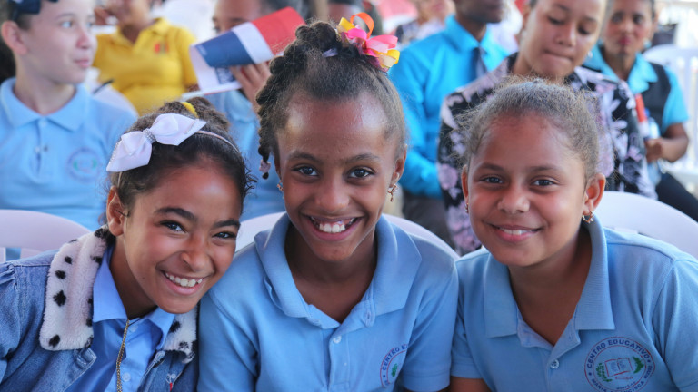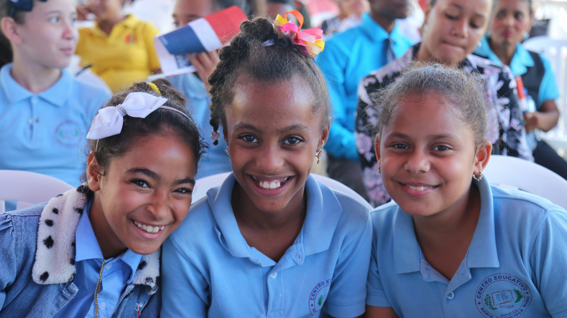 Estudiantes felices por la inauguración de su nueva escuela entregada hoy en acto encabezado por el presidente Danilo Medina. Foto: Presidencia República Dominicana Enlace noticia: presidencia.gob.do/noticias/en-bonao-1190-estudiantes-se-... Video YouTube: www.youtube.com/watch?v=zRGcVip1HRU